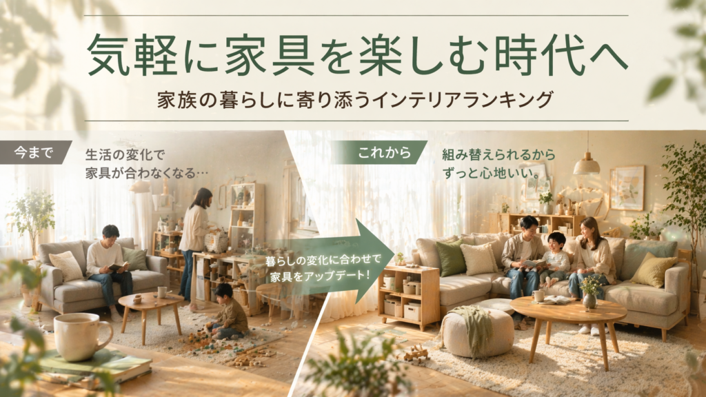 そこで本記事では、家族の暮らしの変化に対応できるインテリアブランドを厳選し、ランキング形式でご紹介します。