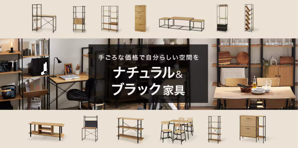 取り扱いジャンルも非常に豊富で、ソファやテーブル、テレビ台、収納家具、ベッド、照明、ラグ、デスクなど、部屋づくりに必要なアイテムを一通りそろえやすい点が強みです。価格帯も比較的手頃で、デザイン性が高いわりに購入しやすい商品が多いため、コスパを重視するユーザーにも向いています。
